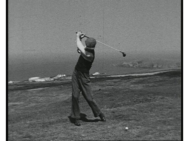 Sports footage comprising a demonstration of golf shots and action from a day’s play at the 1931 Wimbledon Tennis Championship.