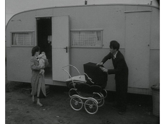 Newsreel item about a landowner who refuses to evict caravan dwellers despite protests from local residents.