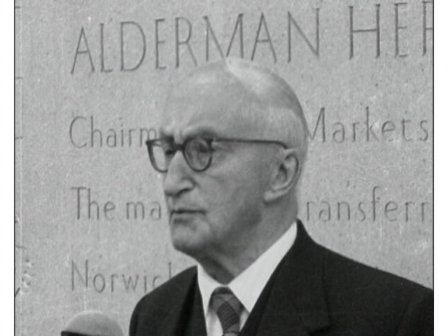 BBC Look East news journalist Ted Chamberlain interviews Mr Fraser concerning the opening of Harford Cattle Market in Norwich.