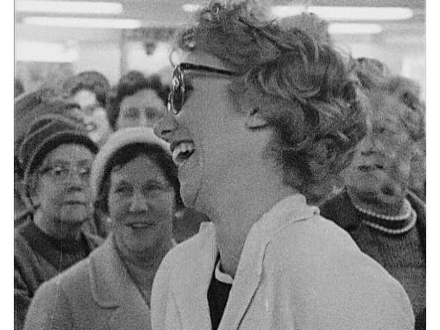 Anglia Television interview with English actress, singer-songwriter and comedienne Joyce Grenfell in attendance at the Kings Lynn festival.