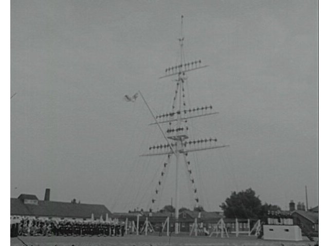 Anglia news footage of the Manning the Mast ceremony at HMS Ganges, naval base in Suffolk.
