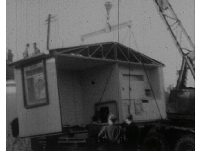 The arrival and construction of 'prefab' housing as a solution to the post-war housing shortage.