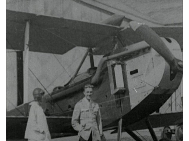 Footage of an early Armstrong Whitworth plane with a pilot and two passengers.