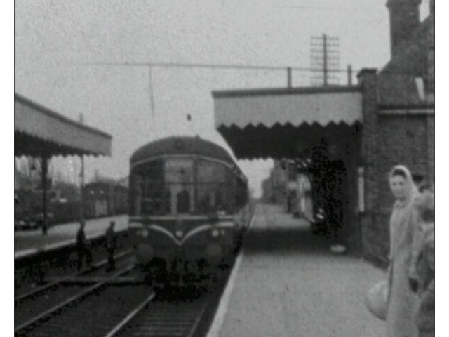 A brief sequence of a DMU (Diesel Multiple Unit) train arriving at North Walsham.