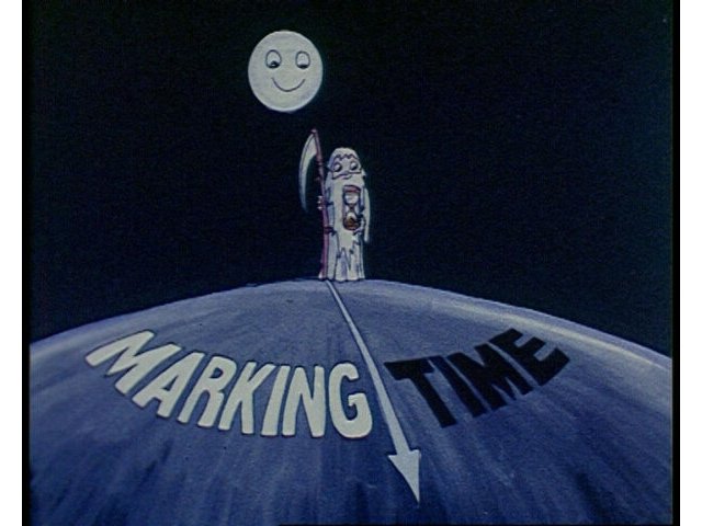 Animation. Cartoon in which a young woman daydreams about suitors and romance while applying her make-up.