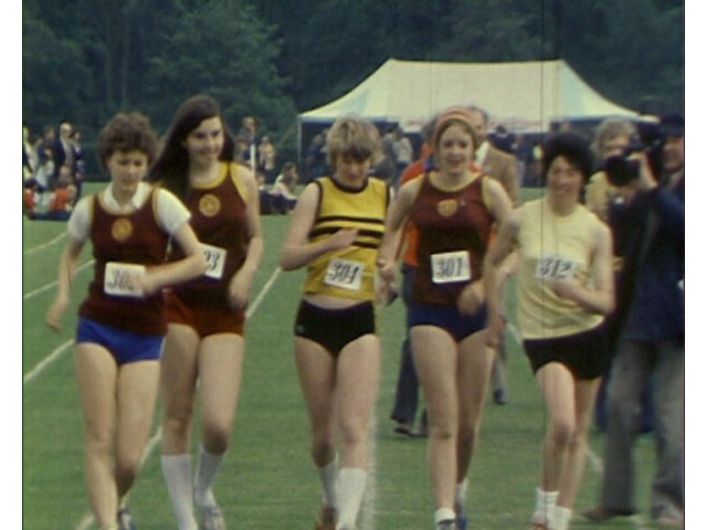 A BBC Look East news story reporting on the athletic sport of ‘race walking’, featuring female competitors at an event.